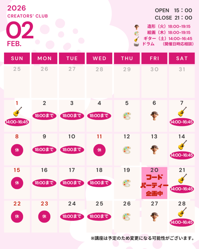 (木)18:00-19:15 | 12,000円→6,000円 | 3,000円→1,500円 |
