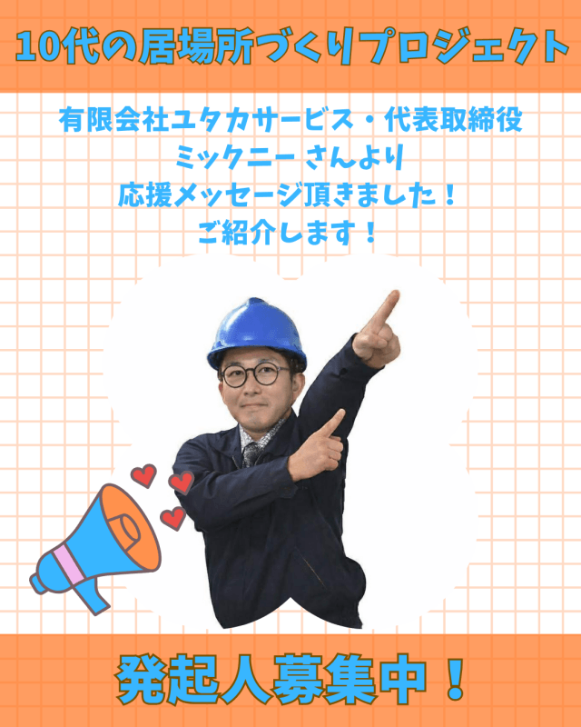 【支援者数29名・266,000円】有限会社ユタカサービス・代表取締役 ミックニー さんからの応援メッセージご紹介