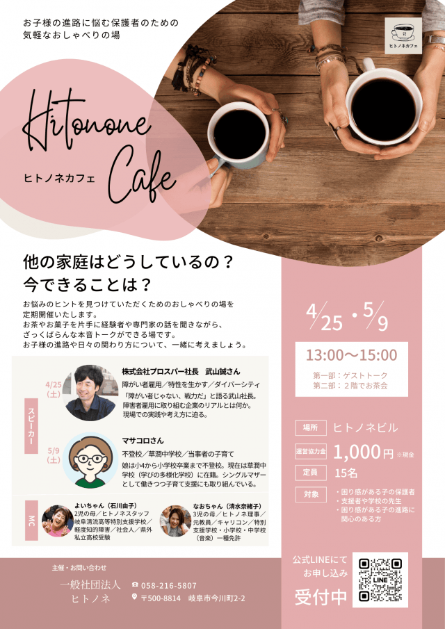 【毎月開催・参加者募集】ヒトノネカフェ(保護者と支援者のしゃべり場)について